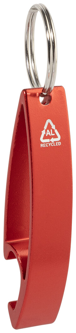 Otvírák na lahve z recyklovaného hliníku s kovovým kroužkem na klíče.