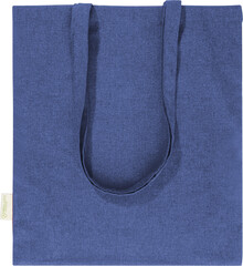Nákupní taška s dlouhými uchy ze 70 % recyklované bavlny a 30 % RPET polyesteru, 140 g/m2. S výraznou etiketou o recyklované bavlně.