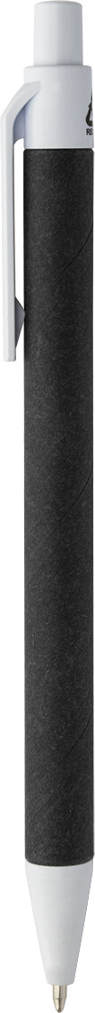 Kuličkové pero z recyklovaného papíru s černým tělem a recyklovanými ABS díly. S modrou náplní.