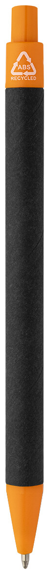 Kuličkové pero z recyklovaného papíru s černým tělem a recyklovanými ABS díly. S modrou náplní.