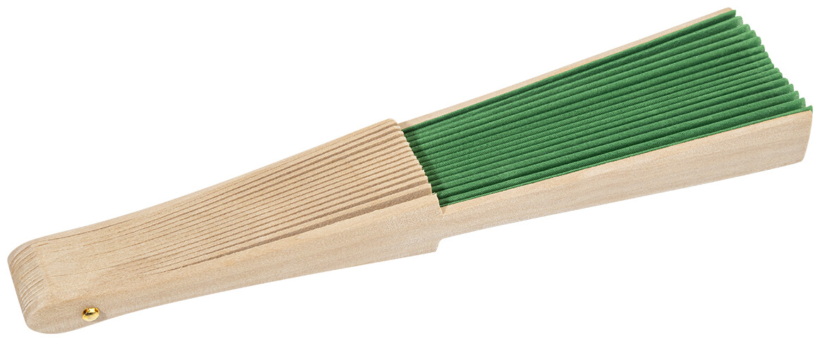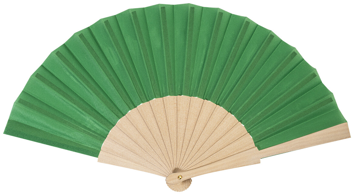 Vějíř z RPET polyesteru s dřevěnými žebry.