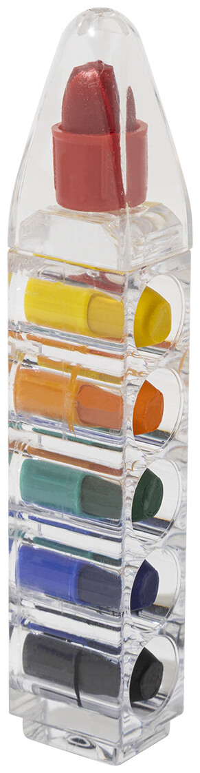 Barevné hroty voskovek (6 ks) v průhledné nádobce ve tvaru pera.