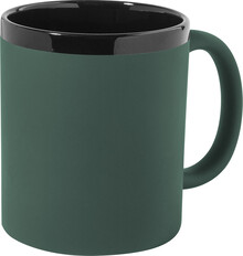 Keramický hrnek s měkkým pogumovaným povrchem a černým vnitřkem a okrajem, 300 ml. Se speciálním povrchem pro gravírování, gravírované logo ladí s barvou na vnitřní straně. V krabičce z kraftového papíru.