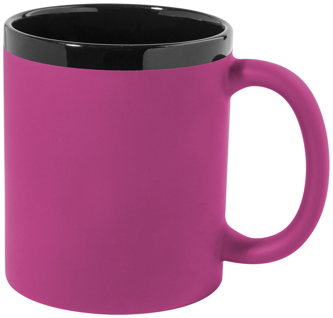 Keramický hrnek s měkkým pogumovaným povrchem a černým vnitřkem a okrajem, 300 ml. Se speciálním povrchem pro gravírování, gravírované logo ladí s barvou na vnitřní straně. V krabičce z kraftového papíru.