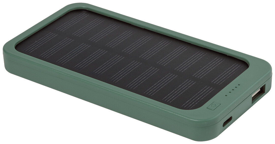 Power banka z recyklovaného ABS plastu s vestavěnou solární nabíječkou a baterií 4000 mAh. S 1 USB a 1 USB-C portem pro nabíjení. Vstupní port USB-C. Včetně nabíjecího kabelu USB.