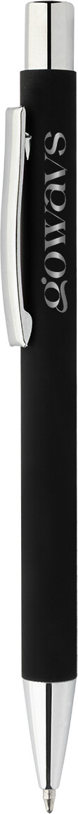 Kuličkové pero z recyklovaného hliníku s černým pogumovaným tělem a barevnými lesklými kovovými částmi. Se speciálním povrchem pro zrcadlové gravírování, které ladí s kovovými částmi. S modrou náplní.