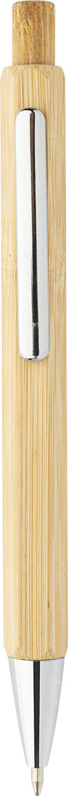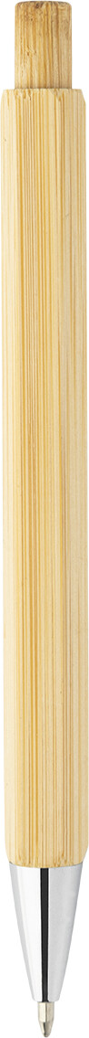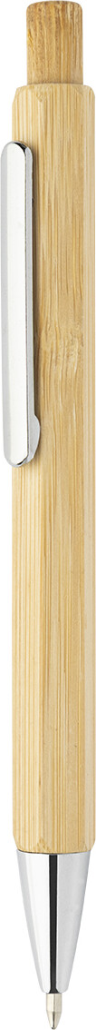 Šestihranné bambusové kuličkové pero s chromovanými částmi. S modrou náplní.