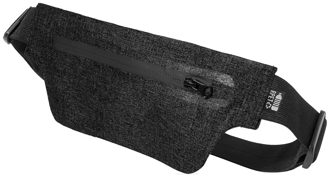 Úzká ledvinka z RPET s přihrádkou na zip a nastavitelným elastickým popruhem. 300D RPET polyester s charakteristickým štítkem RPET.