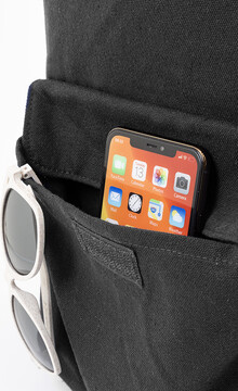 Batoh z recyklovaného plátna s hlavní přihrádkou na zip, polstrovanou přihrádkou na notebook (13") a přední kapsou na suchý zip. 70 % recyklované bavlny a 30 % RPET polyesteru. S výraznou etiketou o recyklované bavlně.