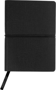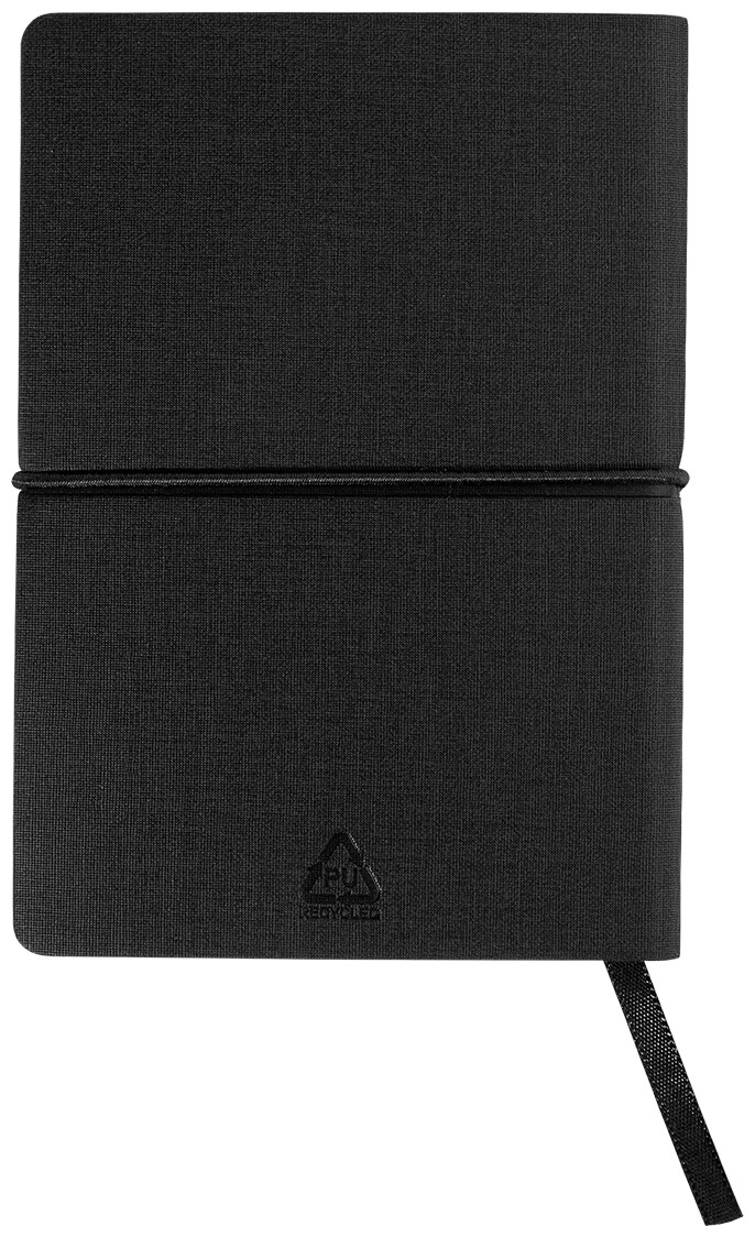Blok A6 s recyklovanou PU kůží, 70 linkovanými listy z recyklovaného papíru, 25 samolepicími papírky a 125 značkovači stránek (v 5 různých barvách). Se záložkou a horizontálním gumovým páskem.