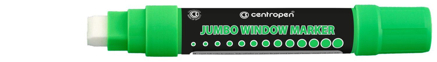 Bezvadně kreslí na sklo! Velkoobsahové značkovače Jumbo jsou vhodné k popisování oken, výloh, zrcadel a automobilových skel. Díky velké krycí schopnosti a zářivým barvám inkoustu jsou nápisy velmi dobře viditelné i z velké dálky. Značkovače jsou plněny tekutou křídou na vodní bázi, která rychle zasychá a lze ji snadno setřít suchým nebo vlhkým hadříkem.