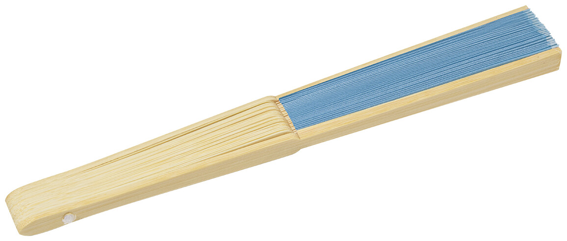 Vějíř z RPET polyesteru s bambusovými žebry.