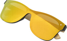 Sluneční brýle se zrcadlovými jednodílnými čočkami a bambusovými nožičkami. S ochranou UV 400.