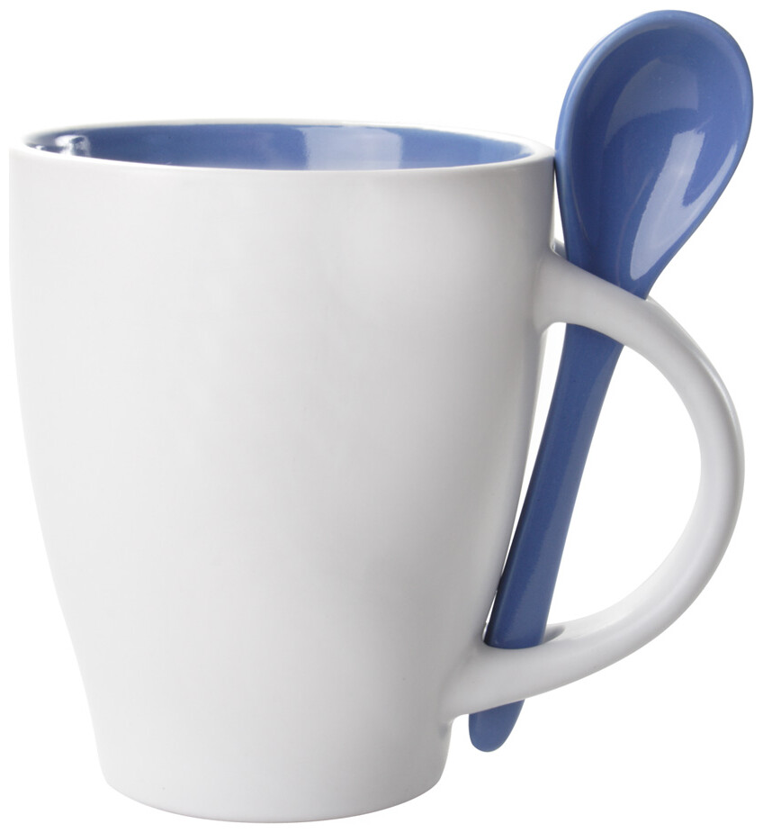 Hrnek se lžičkou - 300 ml Spoon, modrá, bílá