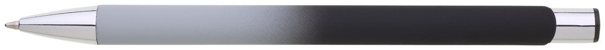 Hliníková propiska se stříbrnými doplňky a měkkým pogumovaným soft povrchem v šedo-černém přechodu. Náplň velkoobsahová, modře píšící.