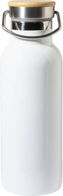 Dvoustěnná, vakuově izolovaná láhev z recyklované nerezové oceli pro sublimační tisk s bambusovým víčkem. 500 ml.
