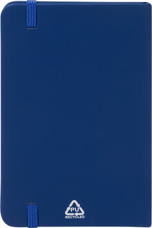 Blok A6 z recyklované PU kůže se 100 čistými listy z recyklovaného papíru. Se záložkou v odpovídající barvě a gumičkou.
