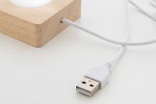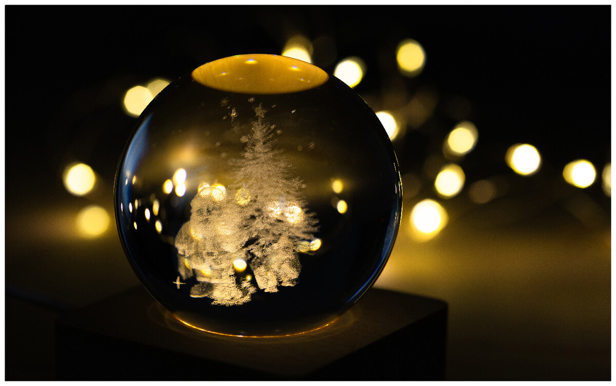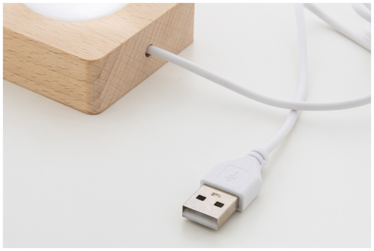 Skleněná vánoční koule s dřevěným LED podstavcem. Včetně USB nabíjecího kabelu.