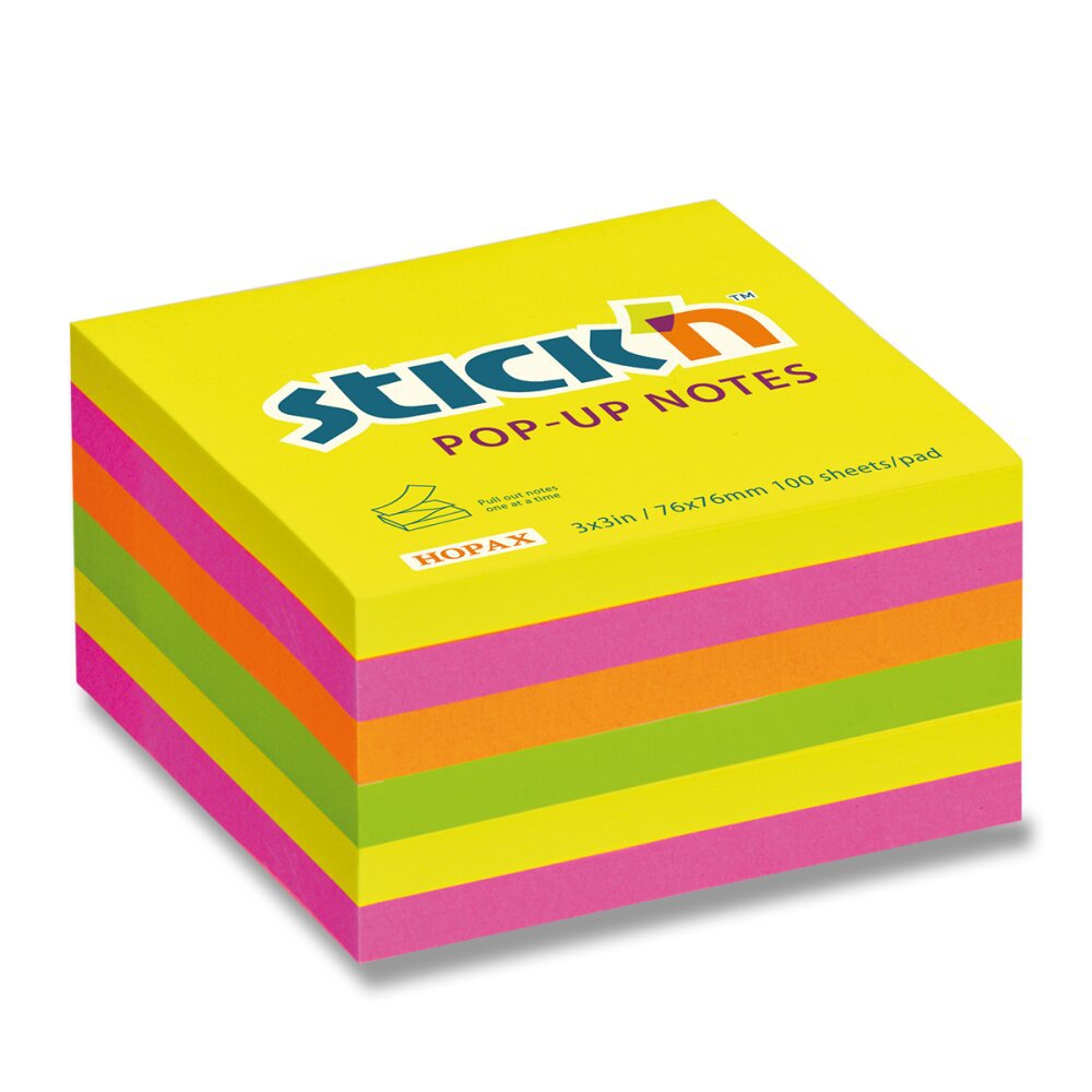 Samolepicí bloček Stick'n by Hopax POP-UP ("Z") , 76 x 76 mm, neon mix, 6 x 100 lístků