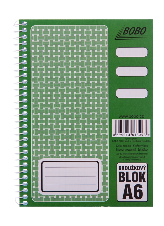 SPIRÁLOVÝ BLOK BOBO BOČNÍ A6 čtvereček