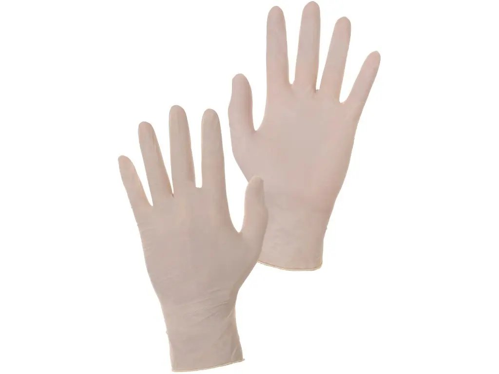 Jednorázové latexové rukavice o hmotnosti 5 g jsou lehce pudřené, dobře se nasazují a poskytují spolehlivou ochranu při úklidu, práci v laboratoři, zdravotnictví i kosmetickém průmyslu. Umožňují také ovládání dotykových displejů, což zvyšuje komfort při práci.