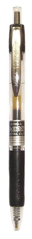 Kuličkové pero gelové s vyměnitelnou náplní U-Knock, šíře stopy 0,5 mm, gumový úchop, kovový klip. Plastové tělo v barvě náplně. Barva: černá.