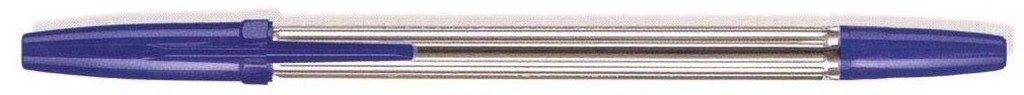 Jednorázové kuličkové pero, šíře stopy 1,0 mm, plastové průhledné tělo s doplňky v barvě náplně. Barva náplně: modrá.