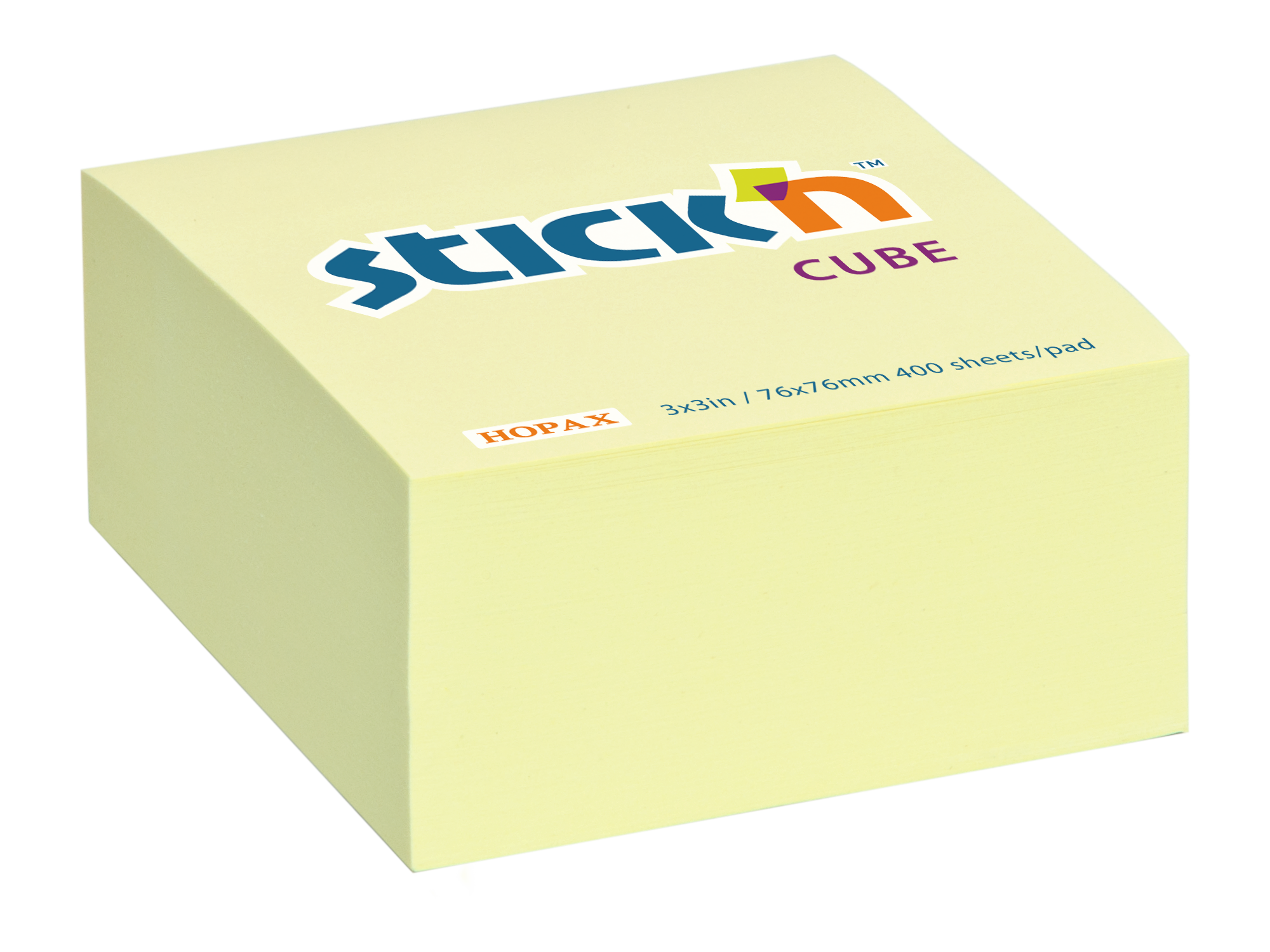 Samolepicí bloček kostka Stick'n by Hopax, 76 x 76 mm, pastel žlutý, 400 lístků