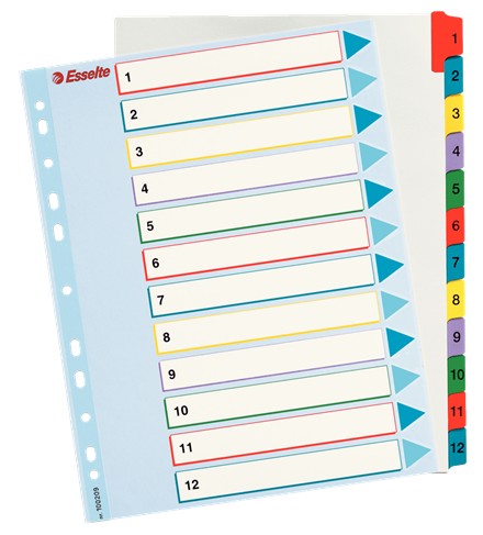 Rozřaďovač Esselte A4 Maxi, 1 - 12, mix barev, 12 listů