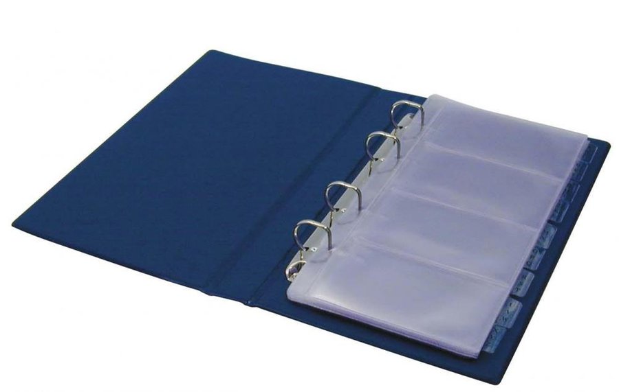 Vizitkář Karton PP A5, kroužkový, čtyřřadý, s rejstříkem, modrý