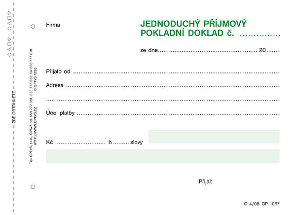 JEDNODUCHÝ PŘÍJMOVÝ POKLADNÍ DOKLAD