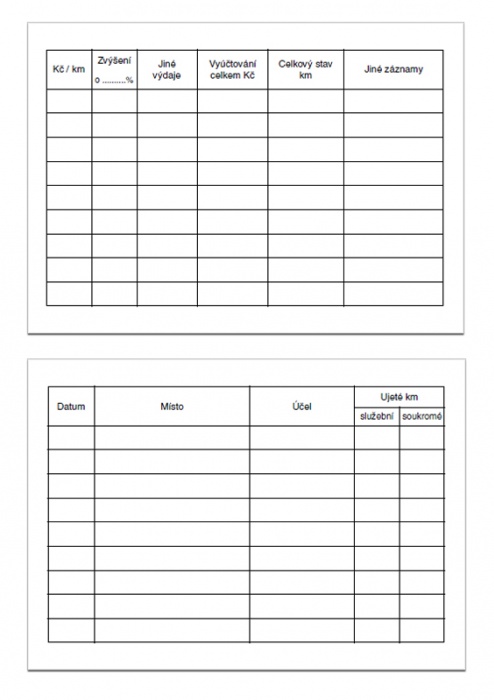 KNIHA JÍZD OSOBNÍHO FIREMNÍHO VOZIDLA