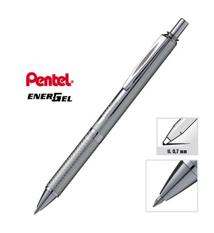Gelové pero s EnerGelovou náplní. Mačkací mechanika, zdrsněný grip pro pohodlné psaní. Součástí pera je elegantní krabička. Náhradní náplň LR7.