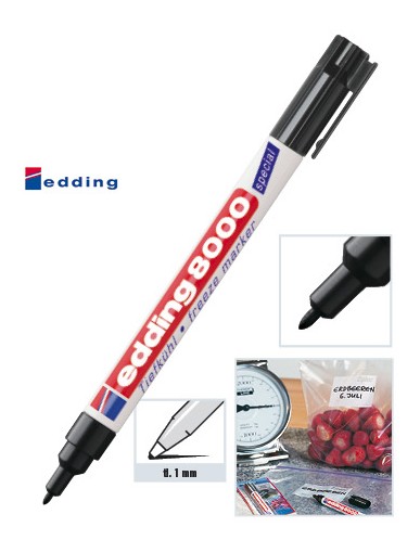 Popisovač pro mrazničky s tenkým kulatým hrotem 1 mm. Permanentní rychleschnoucí inkoust, odolný proti mrazu, bez toluenu/xylenu.