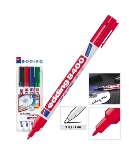 Popisovač na CD a DVD s měkkým kulatým hrotem 0,5 - 1 mm. Permanentní pigmentový inkoust na bázi vody, stálý na světle, odolný proti smazání. Detailní specifikace u jednotlivých popisovačů.