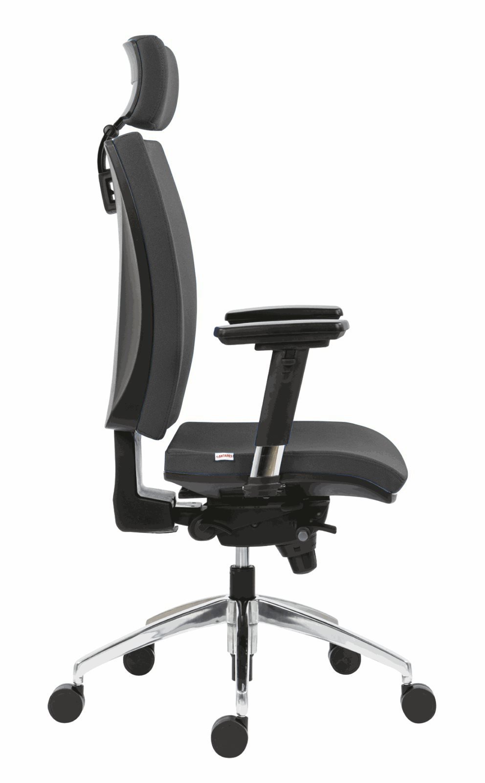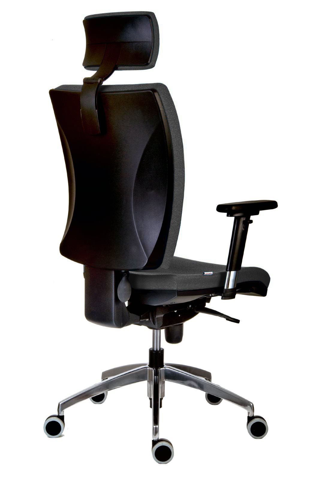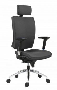 čalouněná židle, synchronní mechanismus s čtyřnásobnou aretací, automatickým nastavením síly protiváhy a nastavením hloubky sedáku, výškové nastavení opěráku mechanismem up-down, moderní plastová pyramidová báze, nový pohodlnější sedák z vrstvené PU pěny, možnost bederní regulovatelné opěrky LAS, volitelné područky, kolečka pr. 60 mm pro měkké podlahy, nosnost 150 kg, český výrobek, záruka 60 měsíců