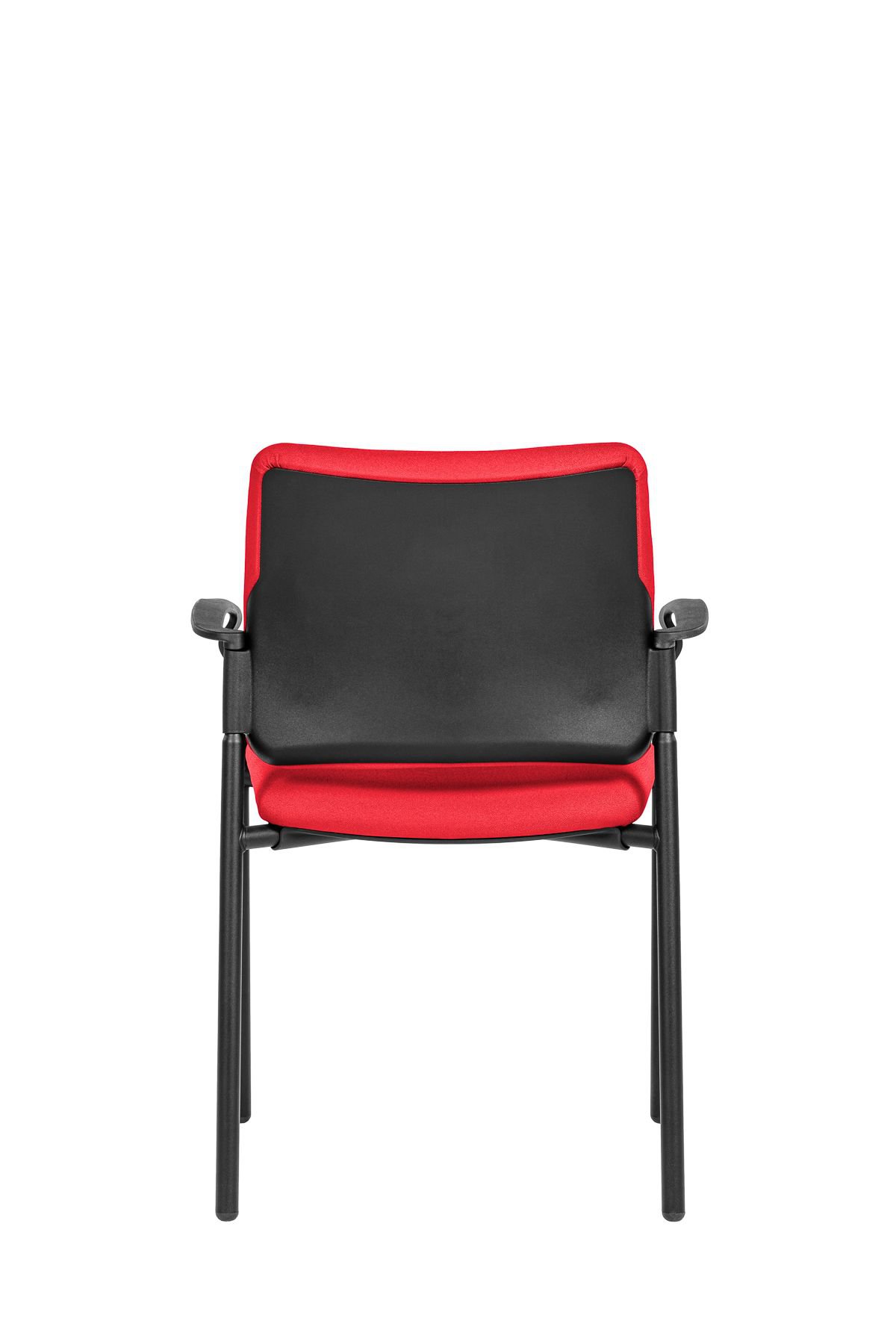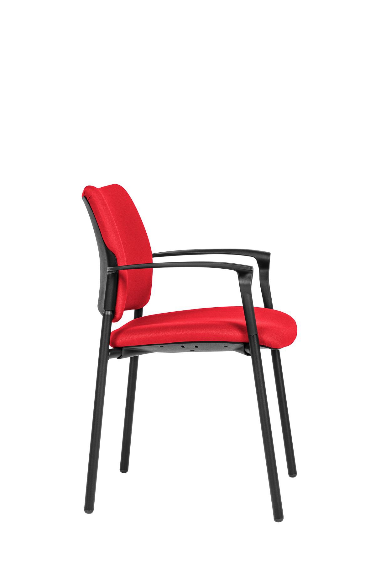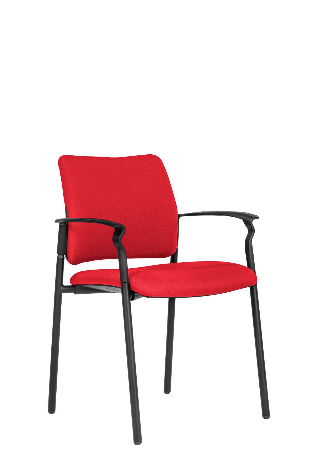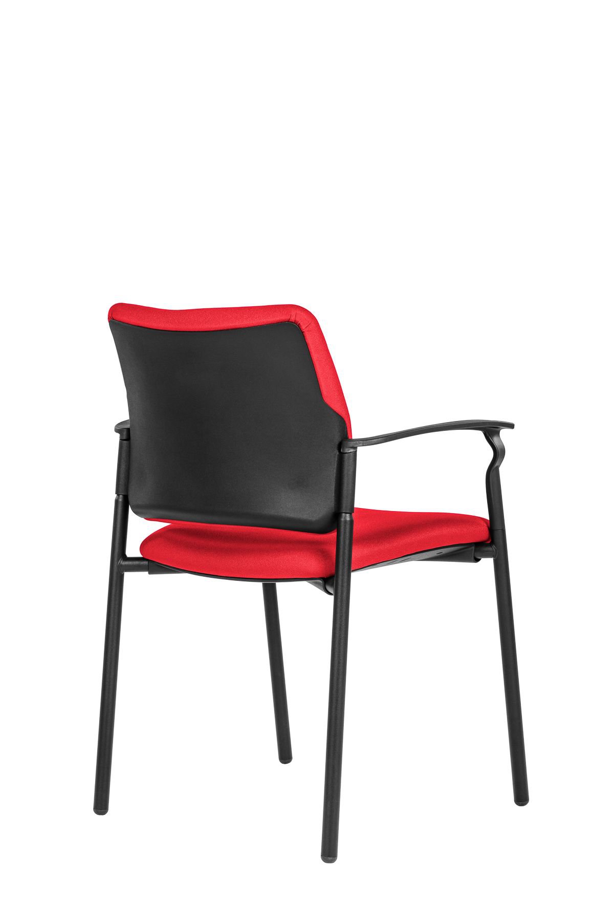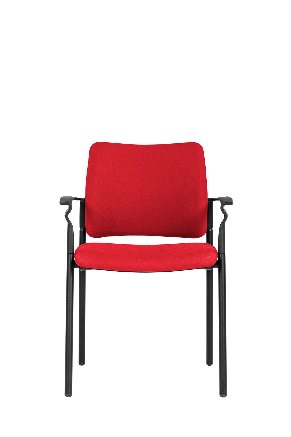 moderní jednací židle včetně područek, čalouněný sedák a opěrák, ocelový rám lakovaný černě, stohovatelnost 5 kusů, nosnost 120 kg, záruka 36 měsíců, český výrobek