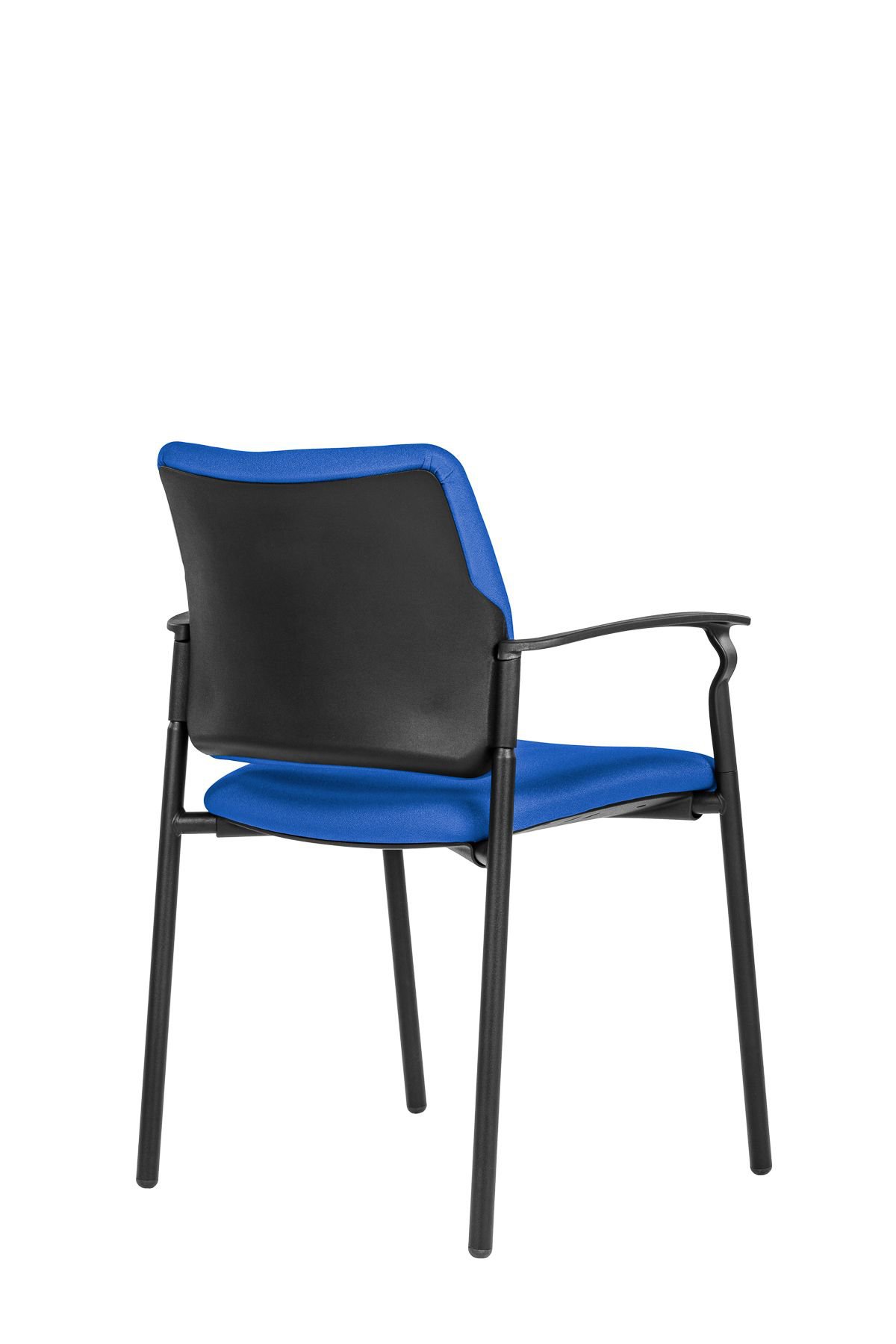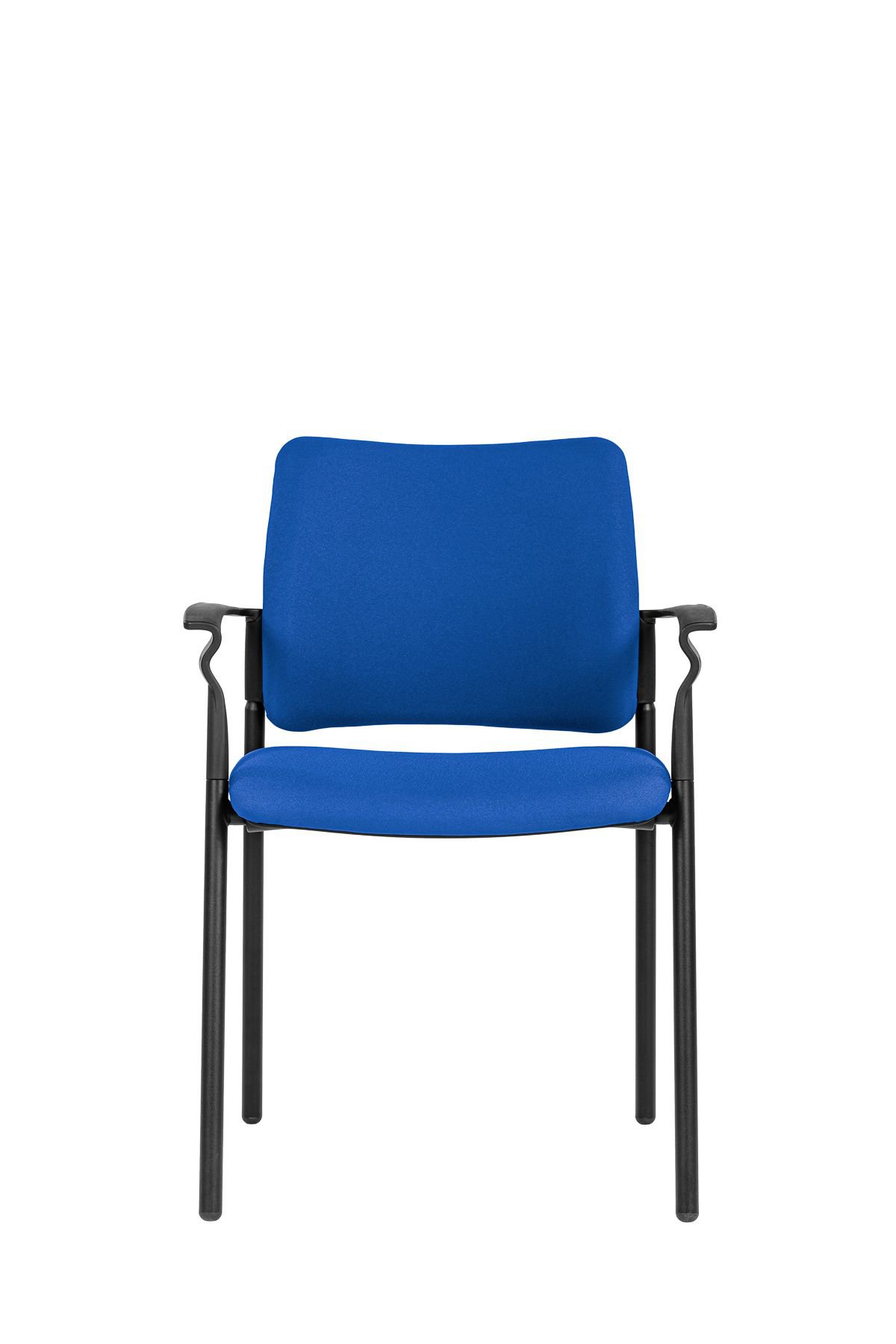 moderní jednací židle včetně područek, čalouněný sedák a opěrák, ocelový rám lakovaný černě, stohovatelnost 5 kusů, nosnost 120 kg, záruka 36 měsíců, český výrobek