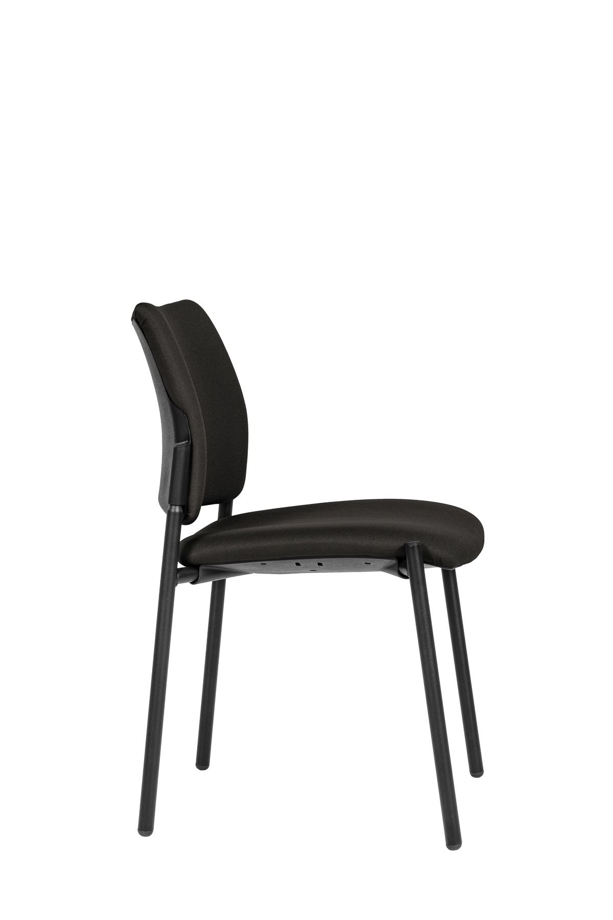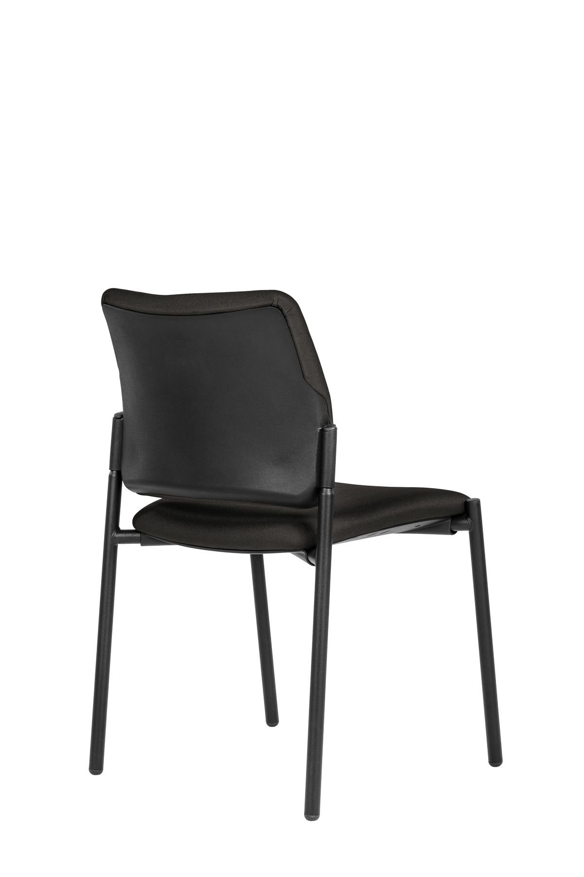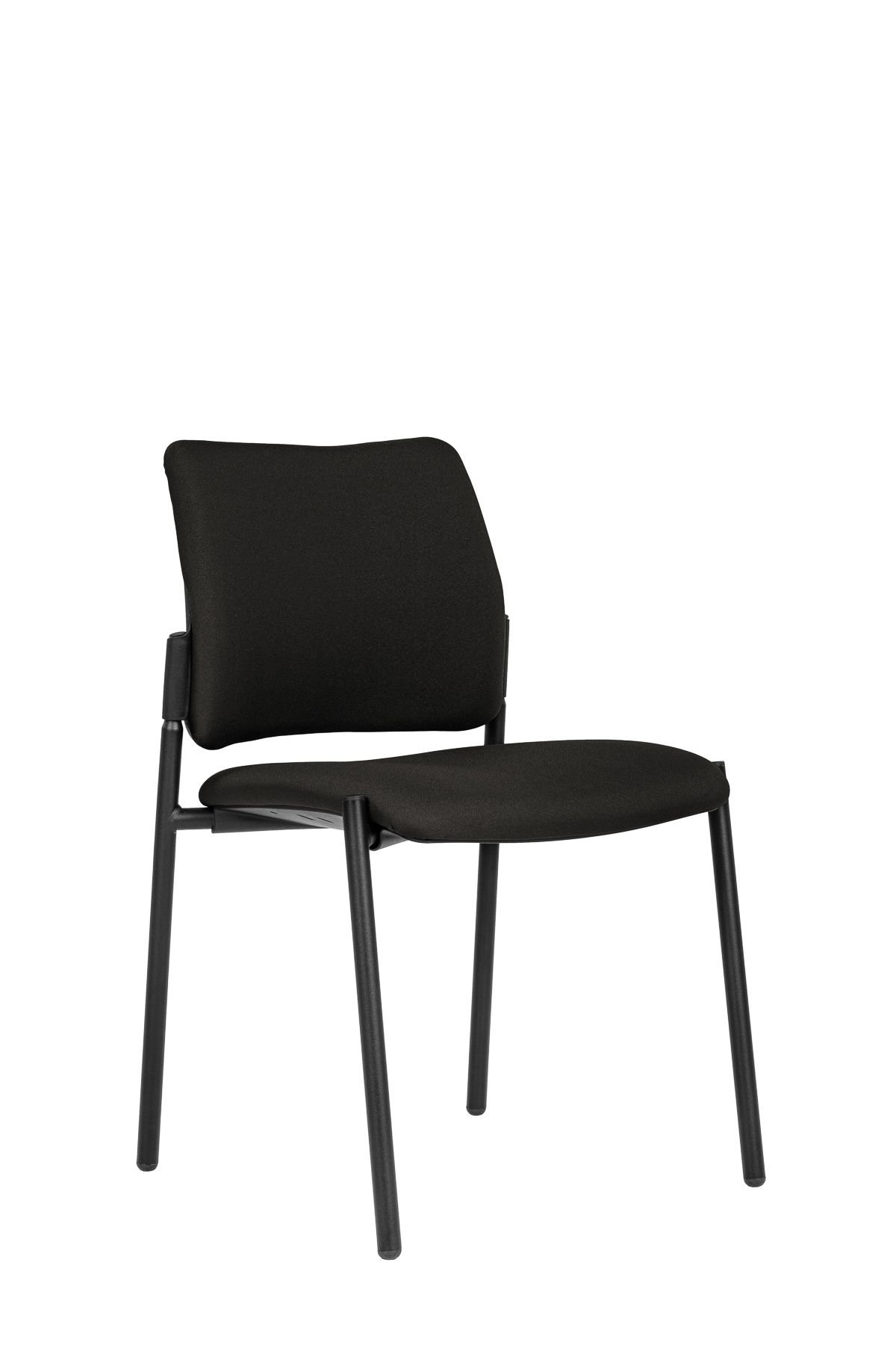 moderní jednací židle bez područek, čalouněný sedák a opěrák, ocelový rám lakovaný černě, stohovatelnost 5 kusů, nosnost 120 kg, záruka 36 měsíců, český výrobek