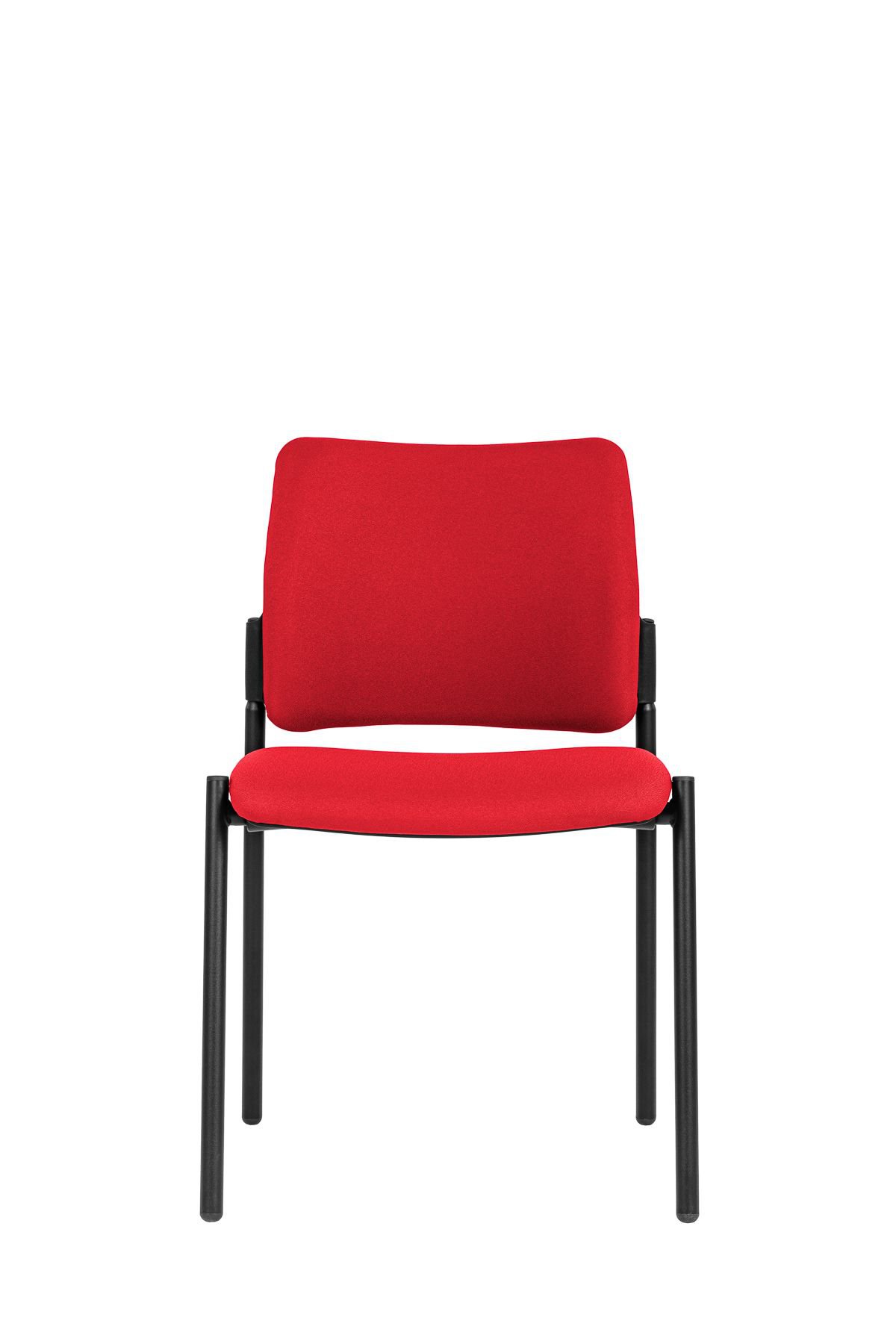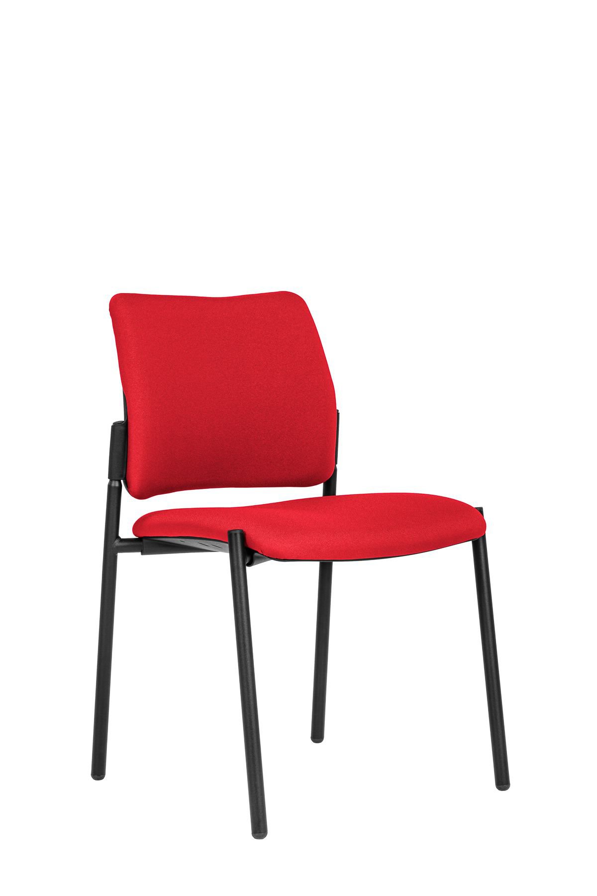 moderní jednací židle bez područek, čalouněný sedák a opěrák, ocelový rám lakovaný černě, stohovatelnost 5 kusů, nosnost 120 kg, záruka 36 měsíců, český výrobek