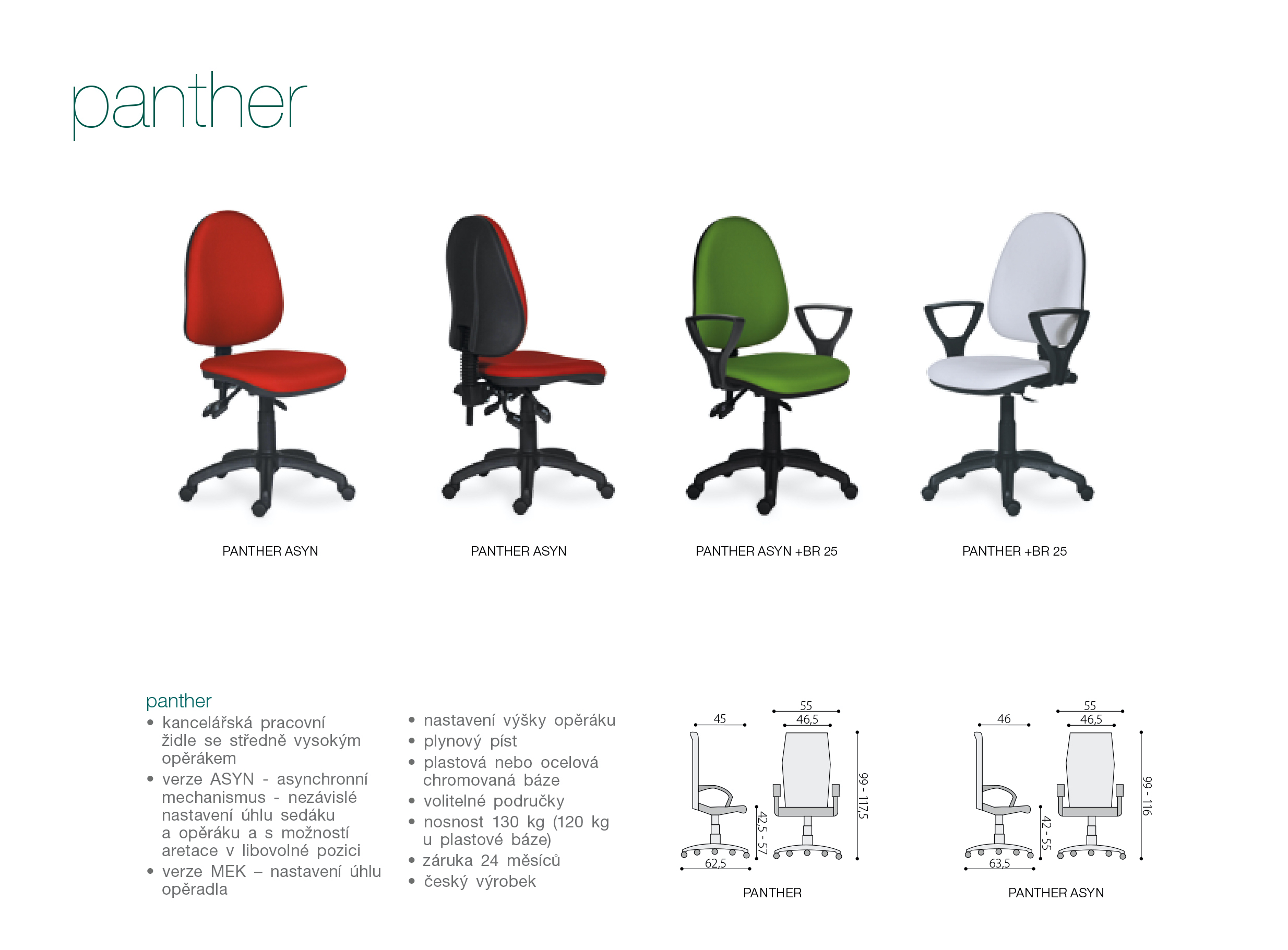 - asynchronní mechanismus - nezávislé nastavení úhlu sedáku a opěráku,
