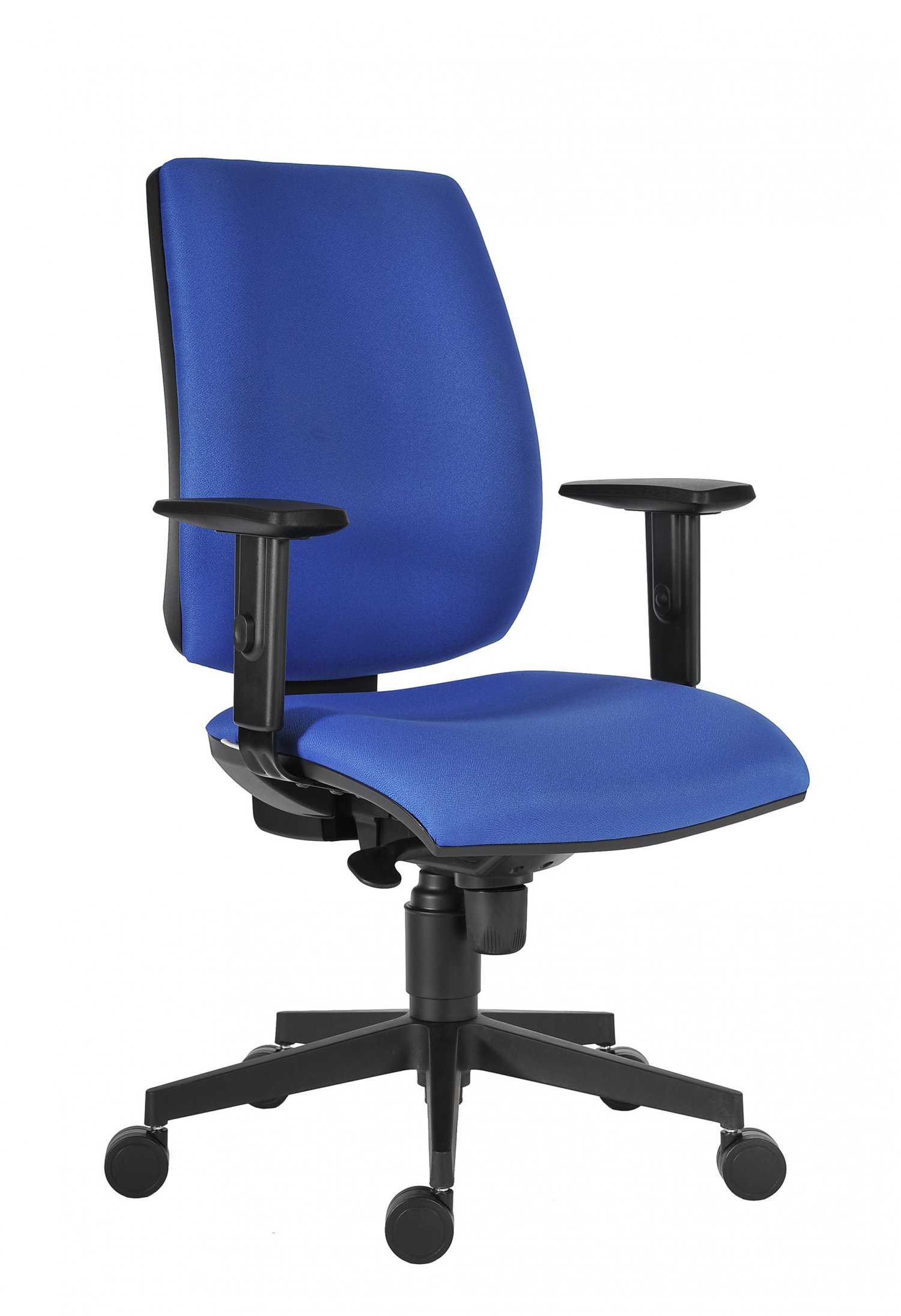 židle s vysokým kvadratickým opěrákem, synchronní mechanismus s čtyřnásobnou aretací, automatickým nastavením síly protiváhy a nastavením hloubky sedáku, moderní plastová báze, výškové nastavení opěráku mechanismem up-down, volitelné područky, kolečka pr. 60 mm pro měkké podlahy, nosnost 150 kg, český výrobek, záruka 36 měsíců
