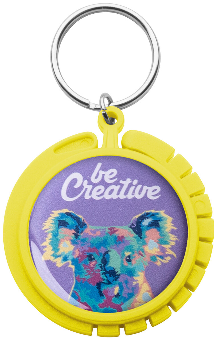 Plastový věšák na tašky s kovovým kroužkem na klíče. Vhodný pro epoxy potisk.