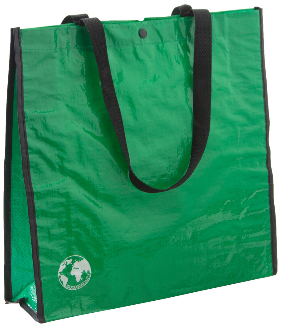 Biologicky odbouratelná nákupní taška se zapínáním na druky. PP tkaný 120 g/m2.