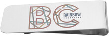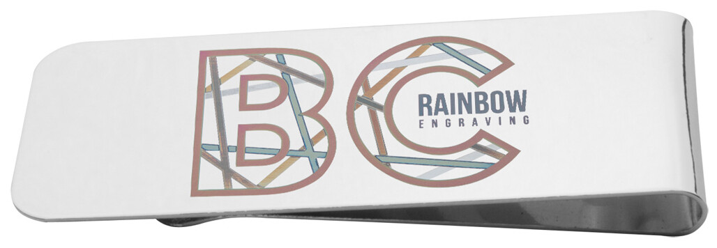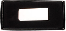 Klip na peníze s chromovým povrchem, v krabičce z černého kartonu.