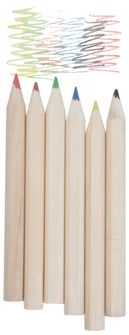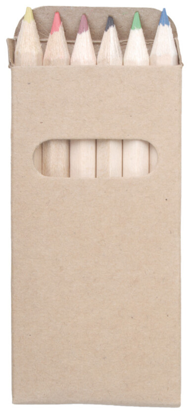 Dřevěné pastelky (6 ks) v papírové krabičce.