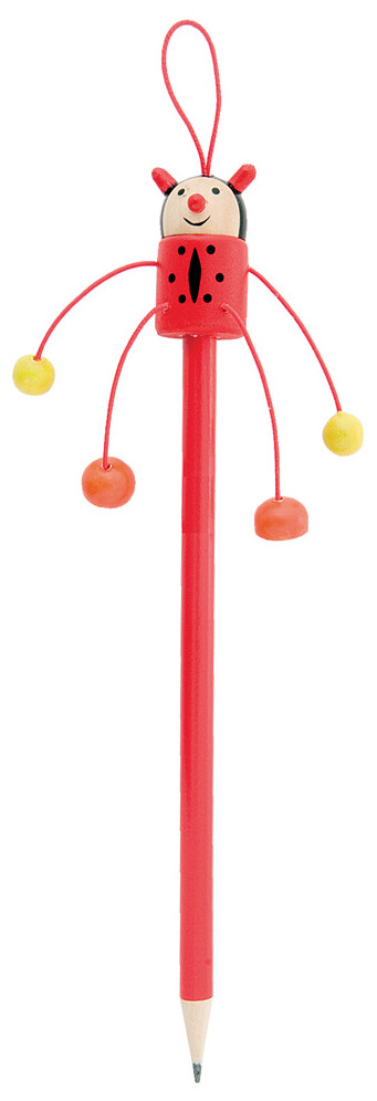 Dřevěná tužka s barevnou figurkou, neořezaná.