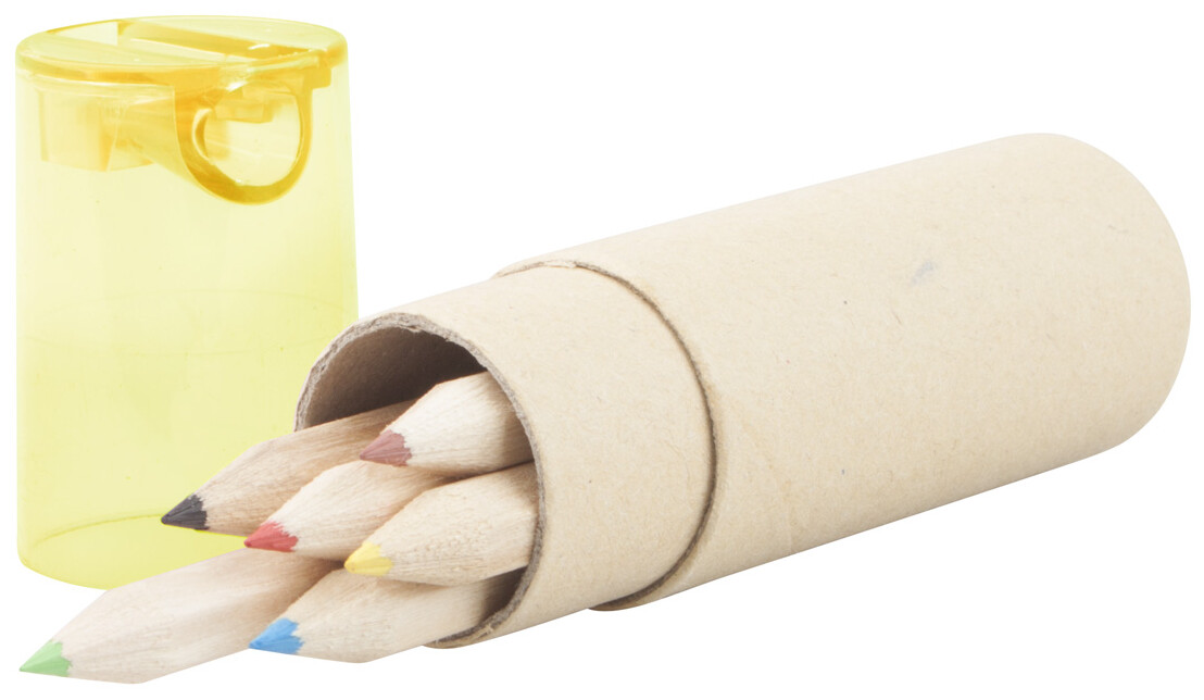 Sada 6ks barevných tužek s ořezávátkem v papírové krabičce.