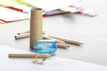 Sada 6ks barevných tužek s ořezávátkem v papírové krabičce.