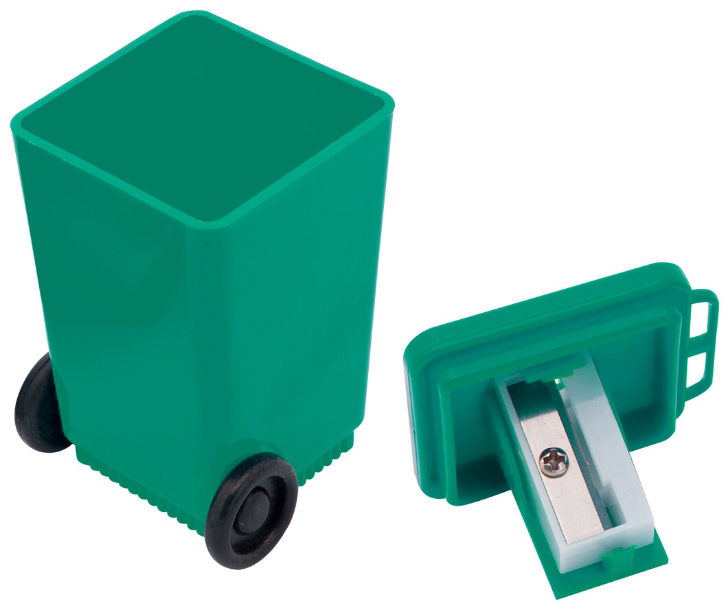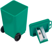 Plastové ořezávátko ve tvaru odpadkového koše.